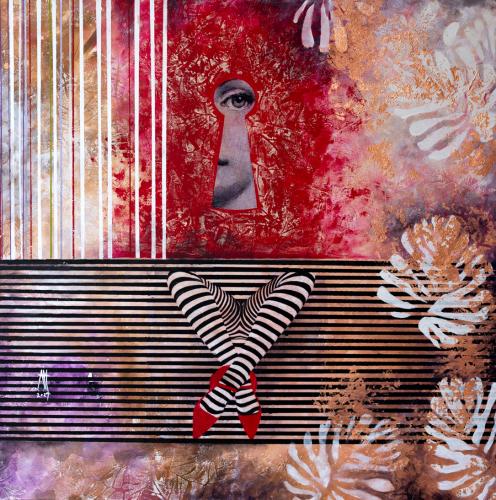 Mixed media, akril, vászon, 80 cm x 80 cm